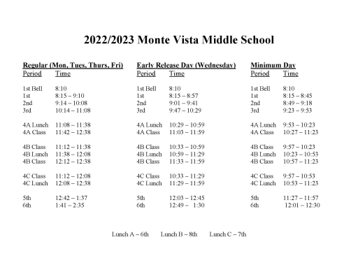 Bell Schedule Monte Vista Middle School